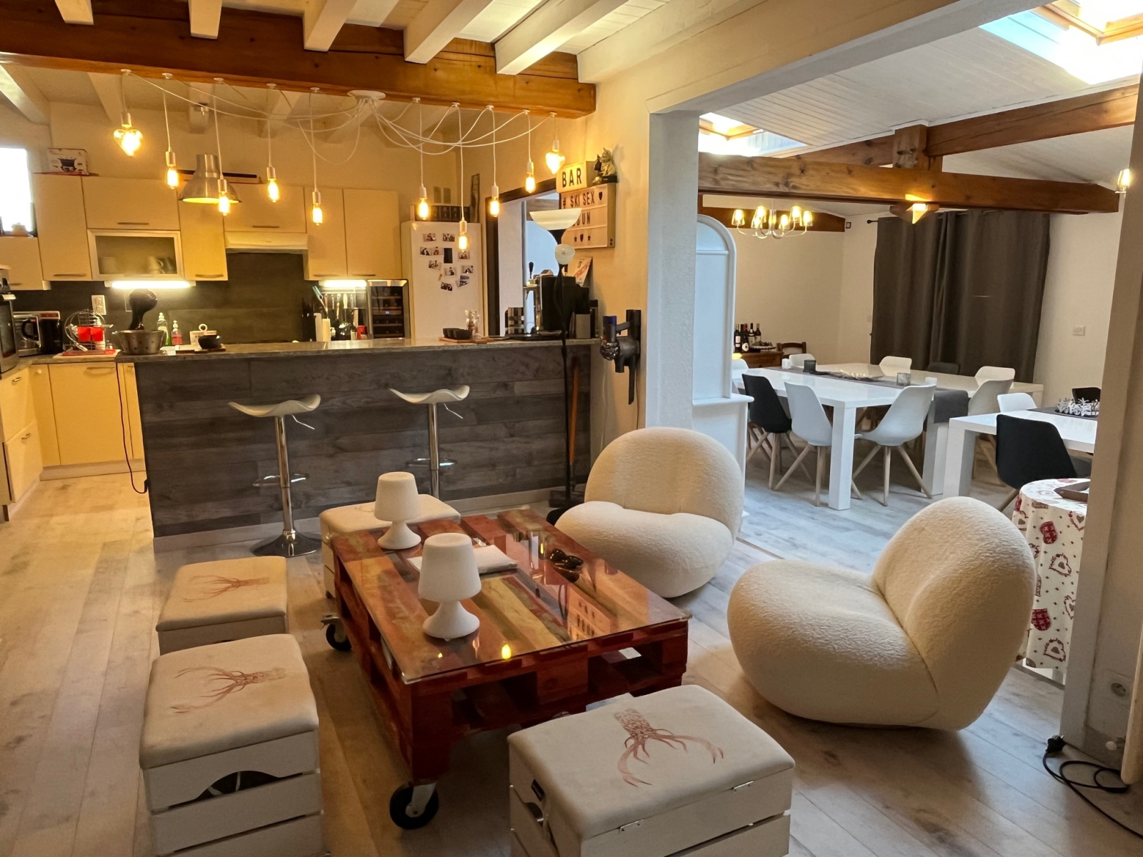 Sa magistrale pièce de vie nous plonge dans un univers où sa salle à manger ainsi que son salon restent indéniablement les pièces maitresses pour se retrouver en famille ou entre amis. sa cuisine ouverte ainsi que sa salle de jeux ne font que confirmer cet esprit chaleureux.