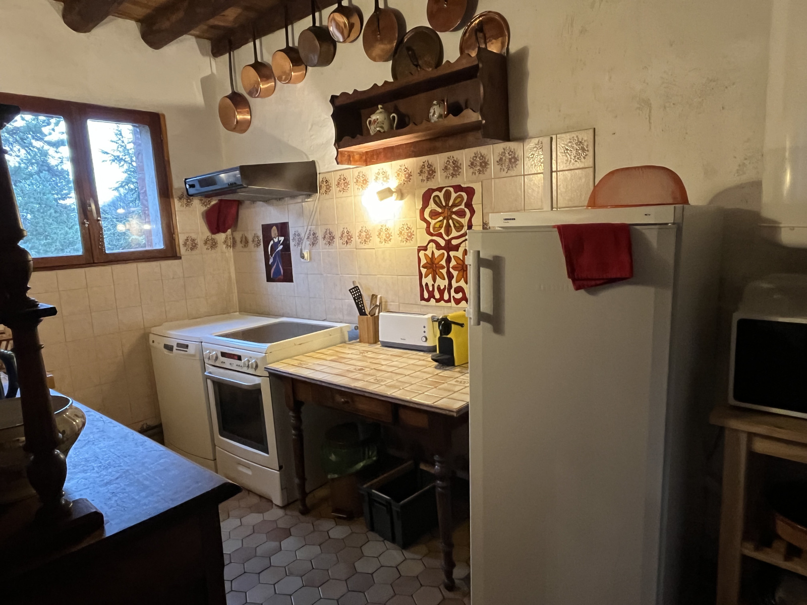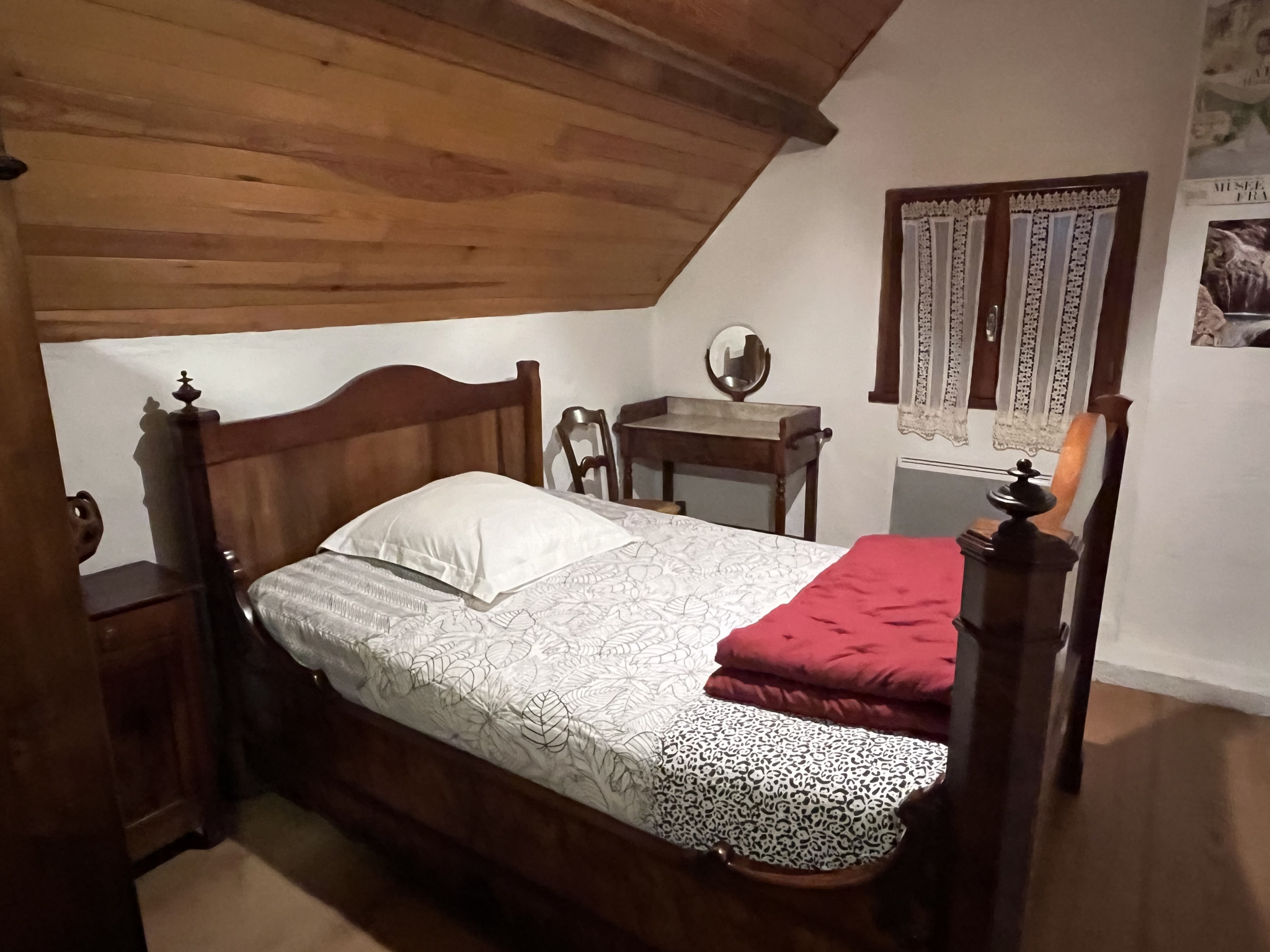 La grande pièce de vie, agrémentée d’une cheminée, invite aux moments de partage en famille ou entre amis. La cuisine, séparée mérite d’y concocter la fameuse « Garbure ».