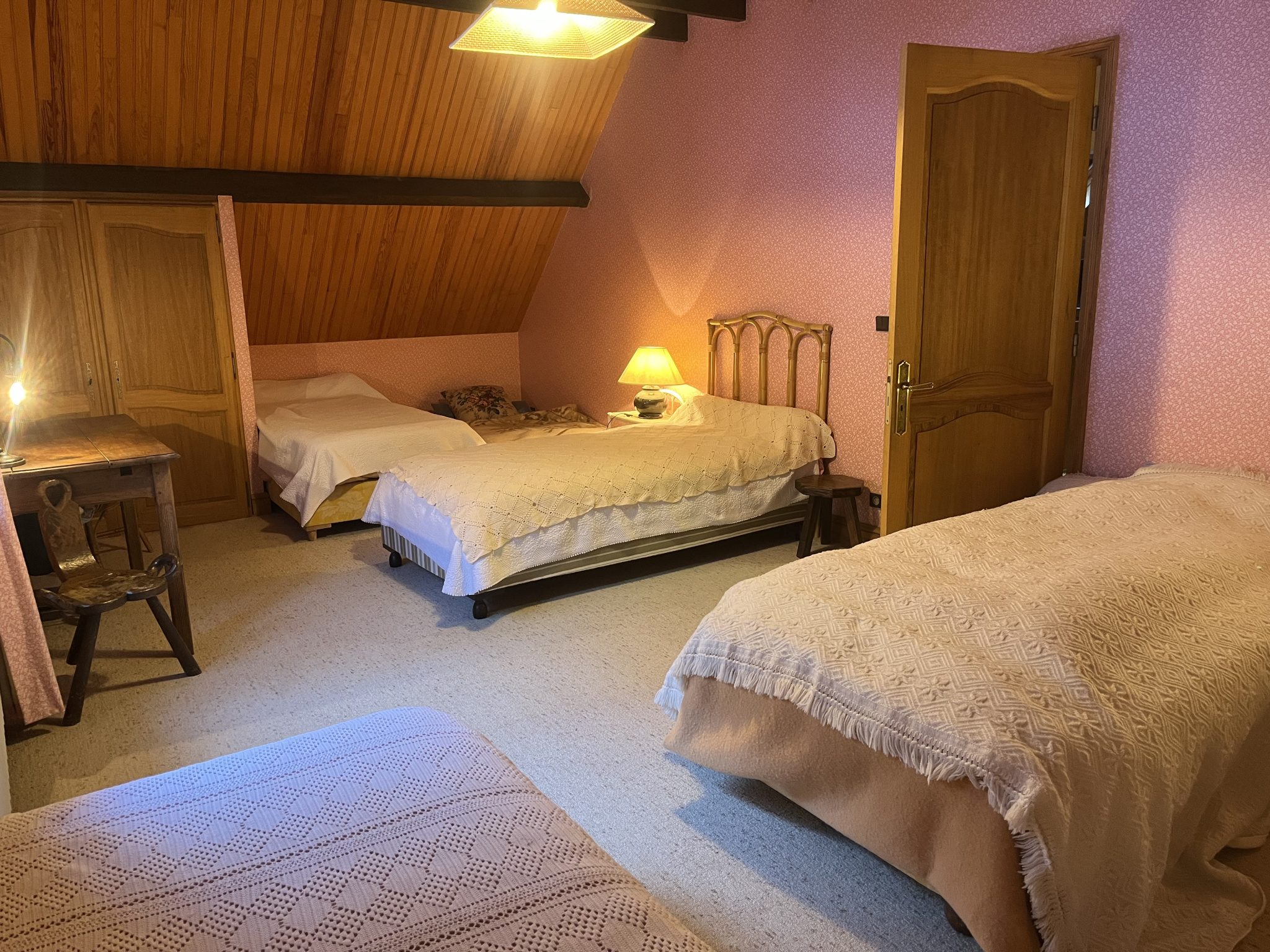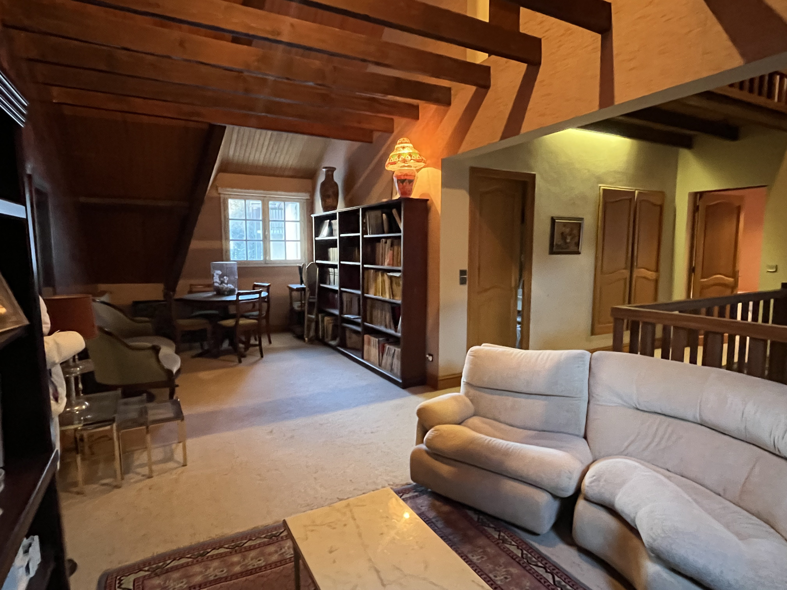 À l’étage supérieur, une vaste mezzanine invite à la détente et dessert deux chambres spacieuses ainsi qu’une salle de bain avec WC, idéales pour accueillir famille et invités.