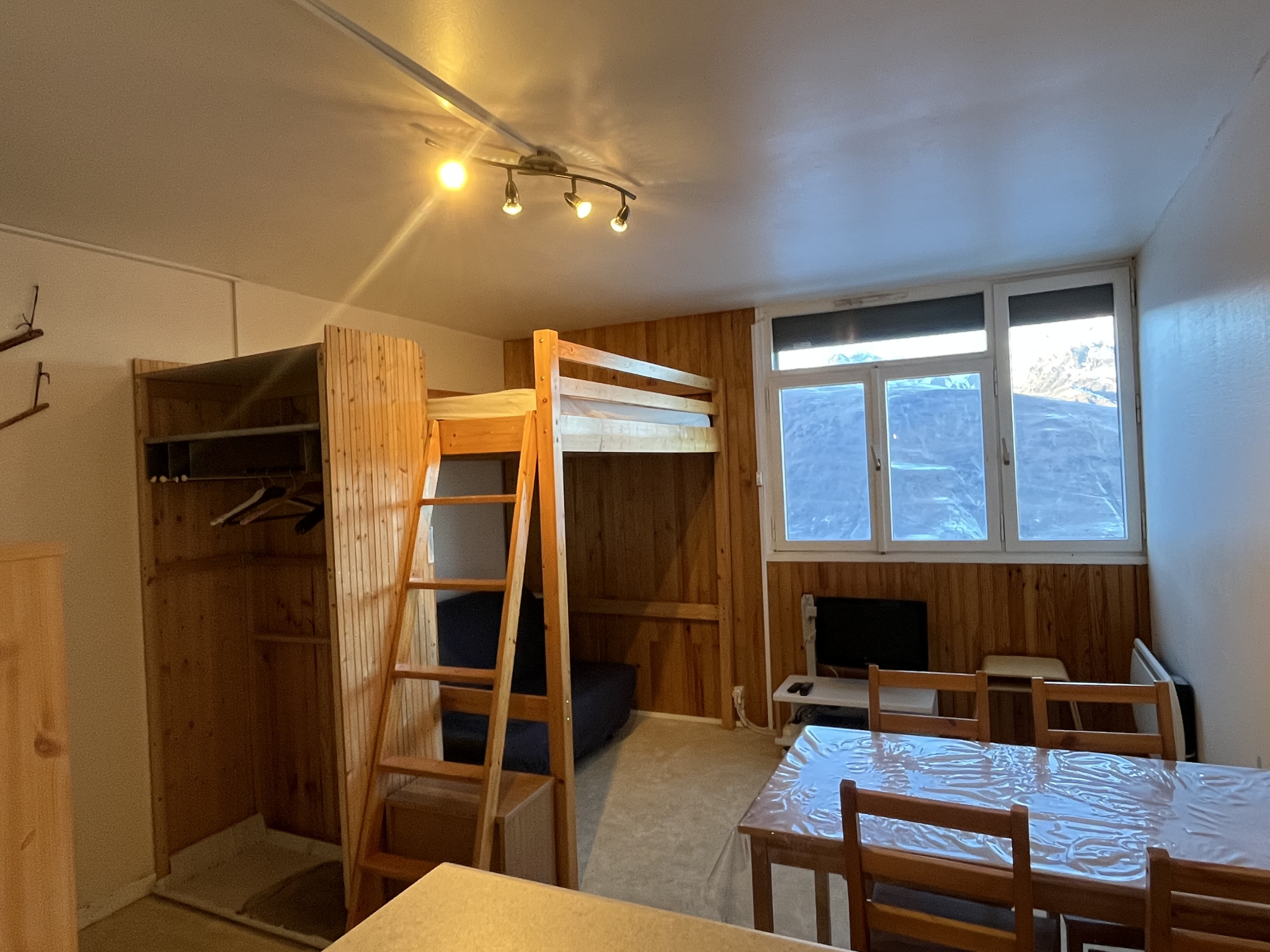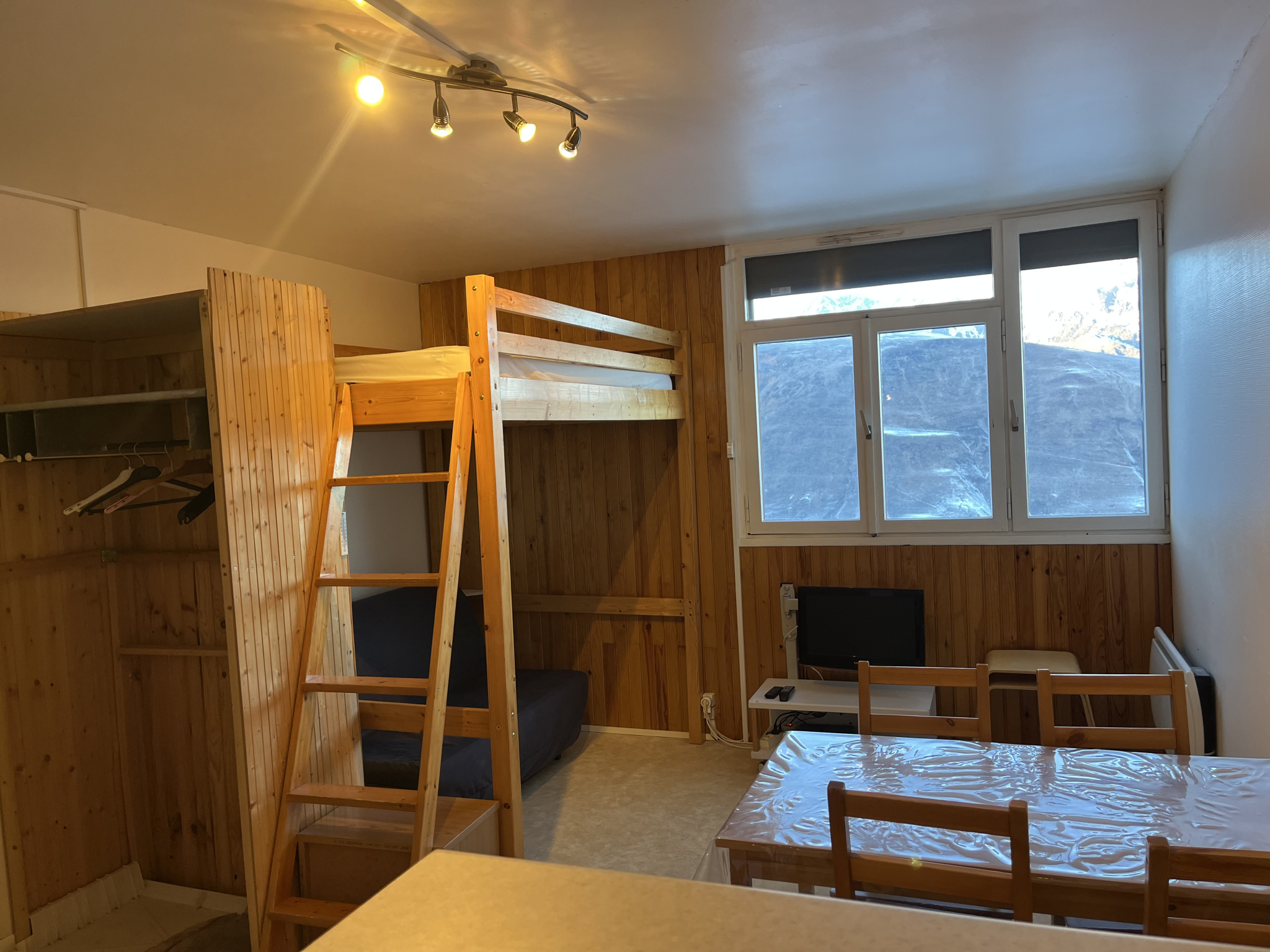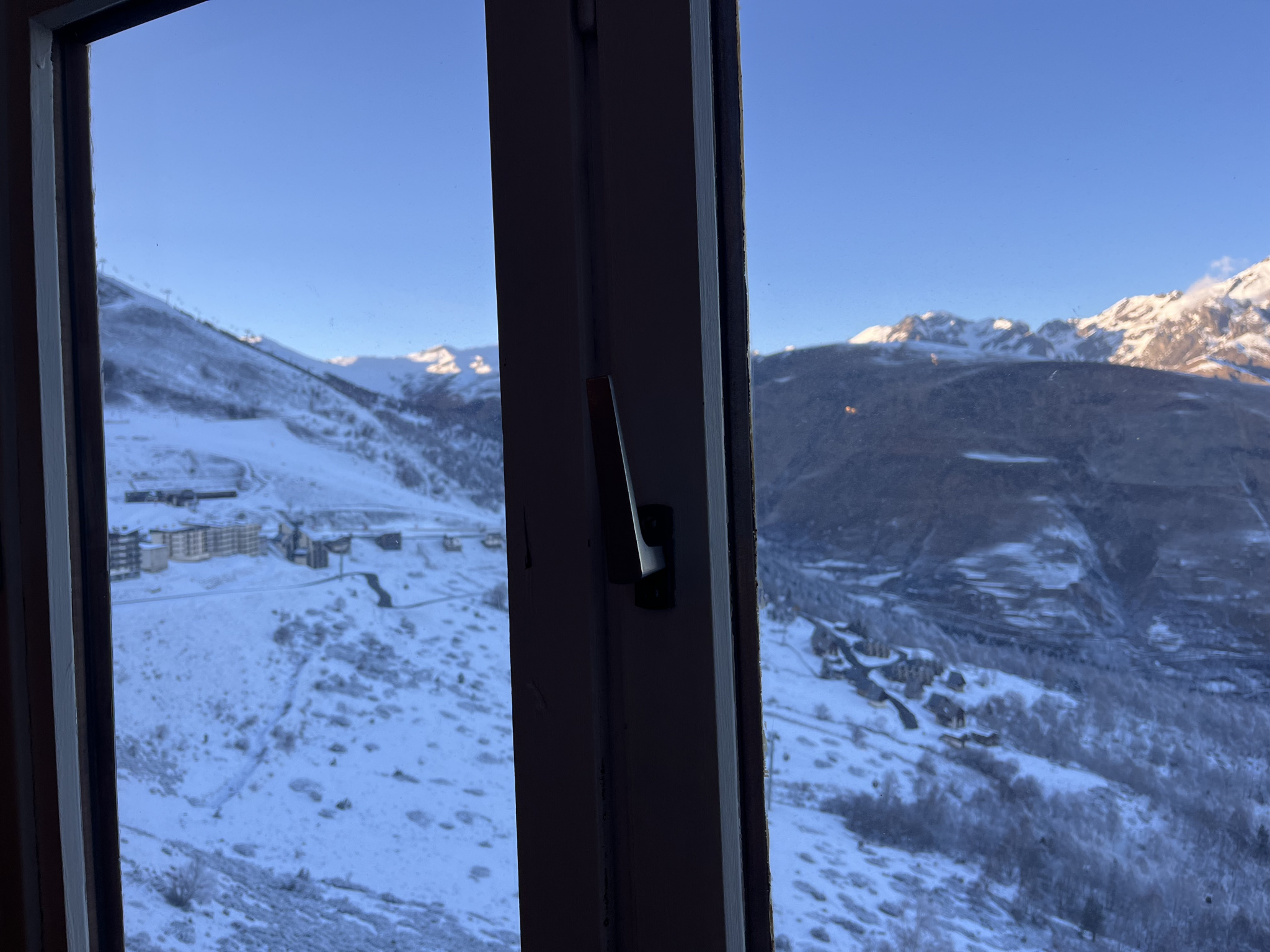 Depuis l’appartement, le regard se perd sur les reliefs enneigés et sur la silhouette emblématique du pic de l’Arbizon, offrant un spectacle naturel qui évolue au fil des saisons.