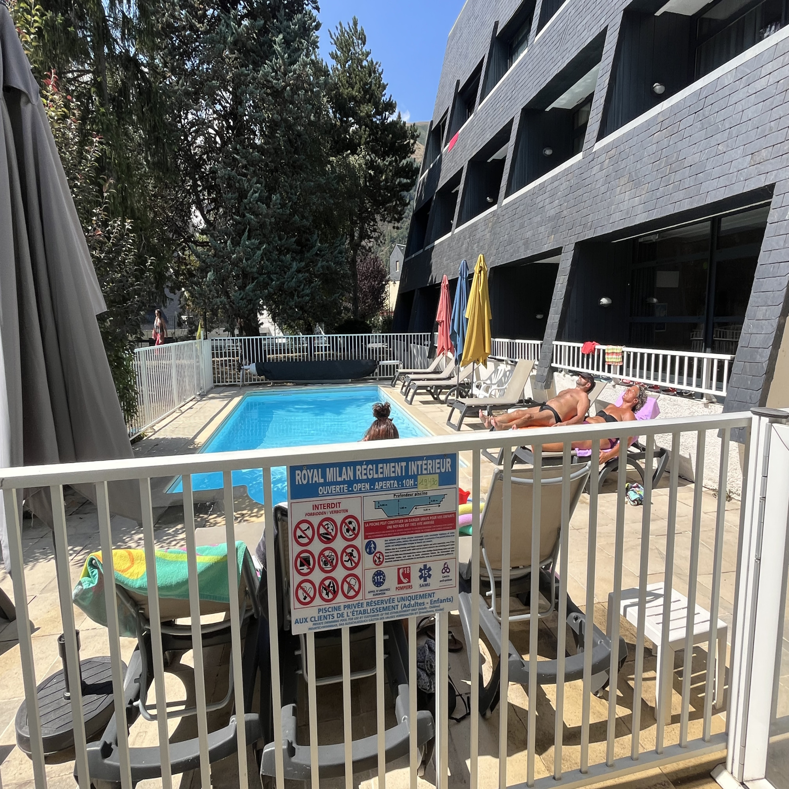 Le balcon s’ouvre sur un panorama de montagne, invitant à savourer l’instant présent.
