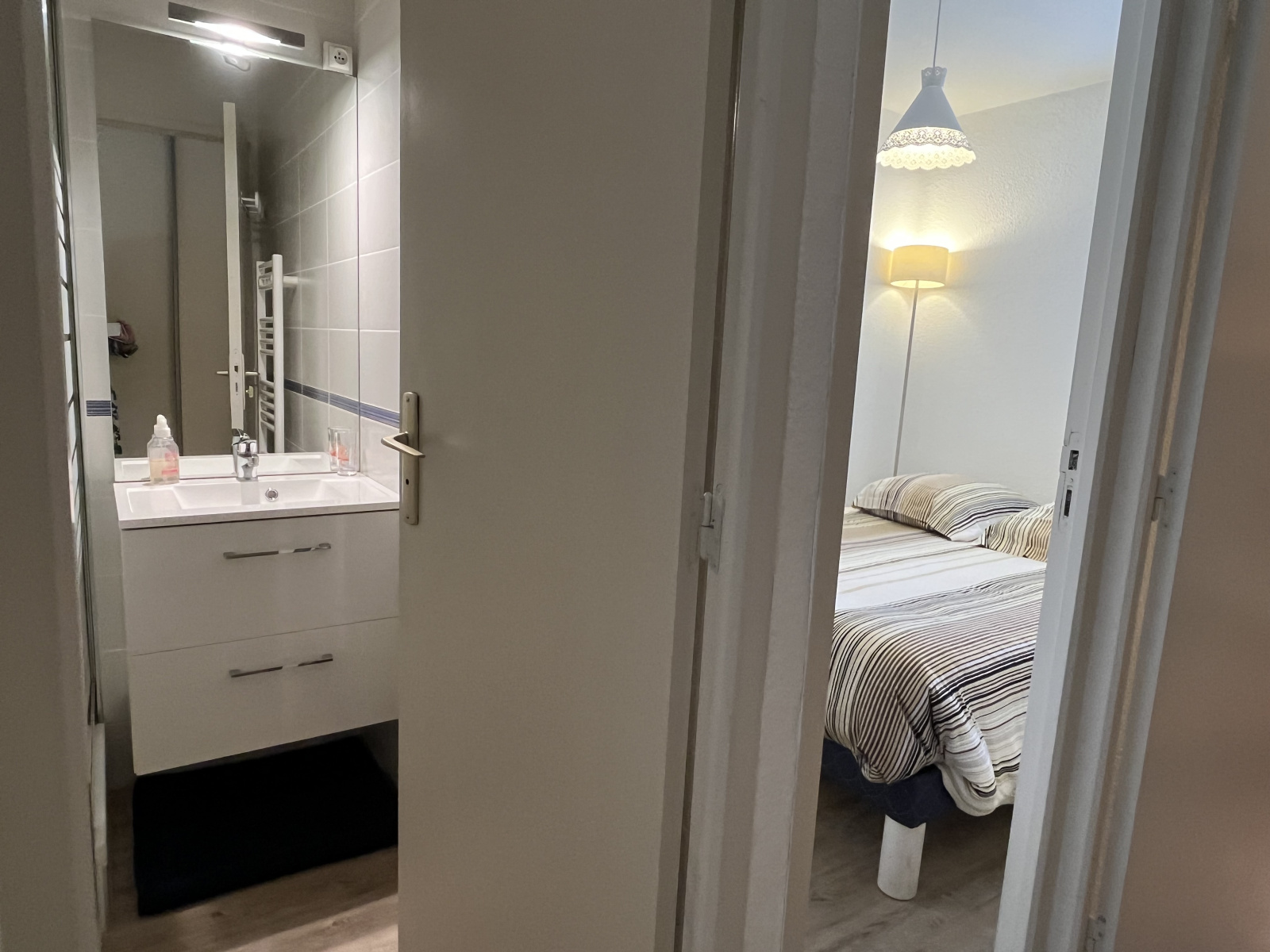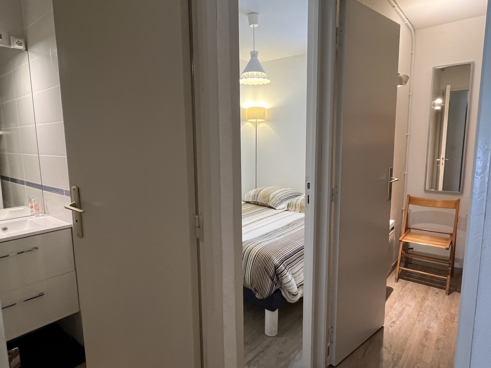 La salle de bain, récemment rénovée, conjugue confort et modernité. Mais la véritable surprise se dévoile à l’extérieur : un petit jardin discret, presque confidentiel, où savourer un café au calme, loin des regards.