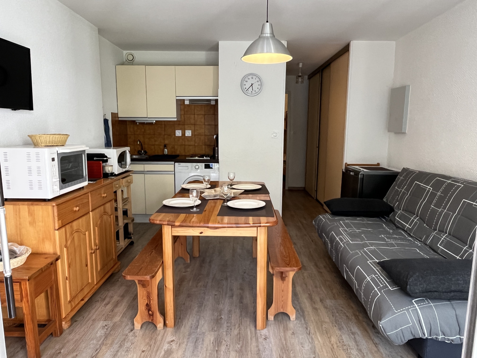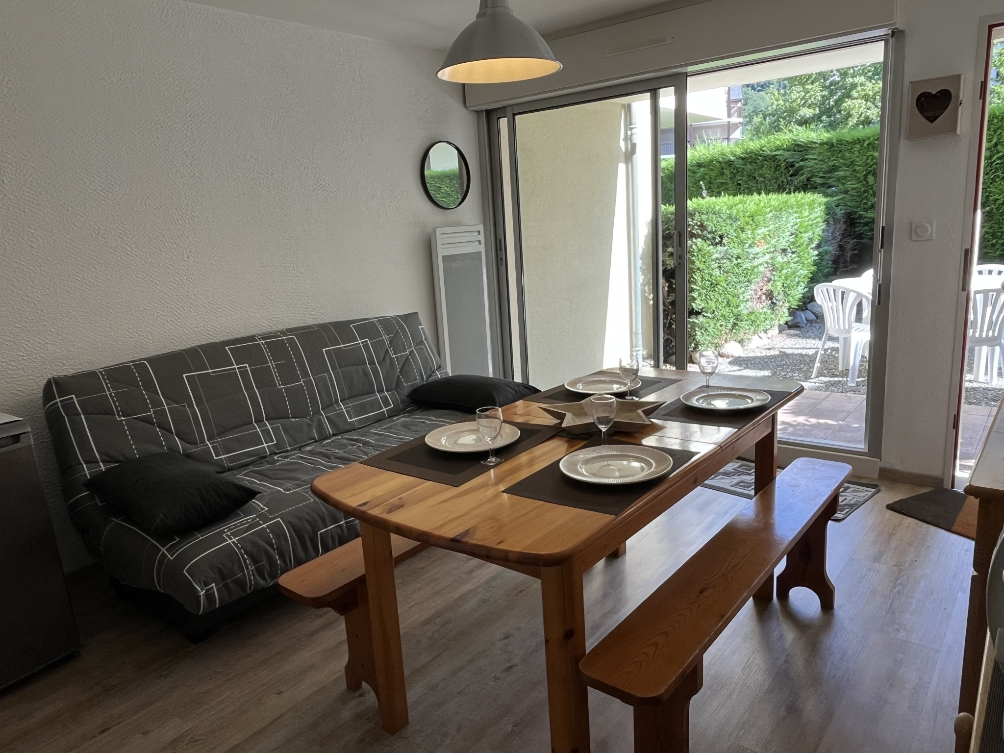 - À deux pas des Thermes et de la télécabine, lové dans un quartier où tout est accessible à pied — commerces, marché et douce animation — se trouve un appartement comme un secret bien gardé.