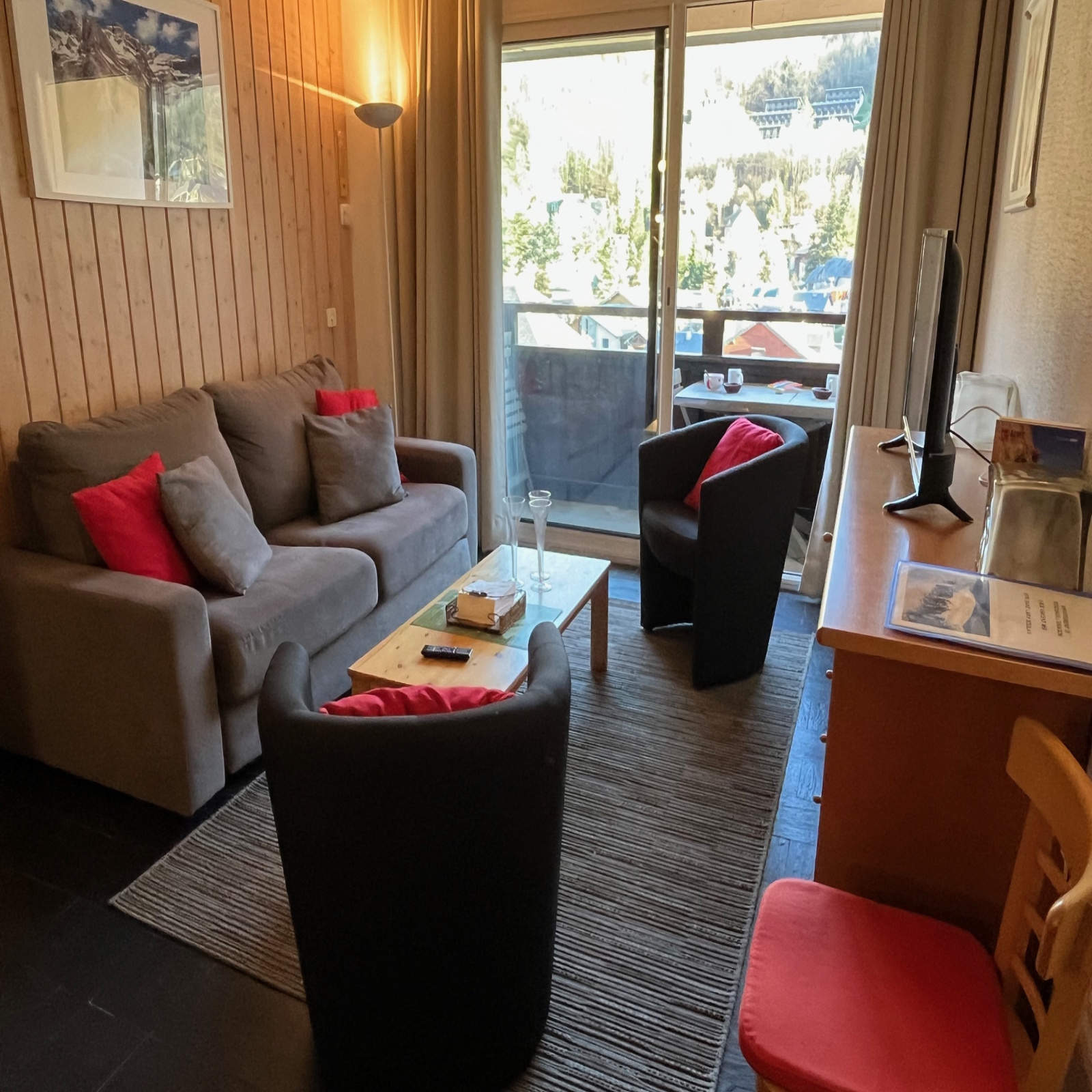 Focus sur la vue imprenable et l’ambiance montagne de ce trois pièces de 55 m2 où le mélange pierre, bois et ardoise, valorise son esprit « chalet»,