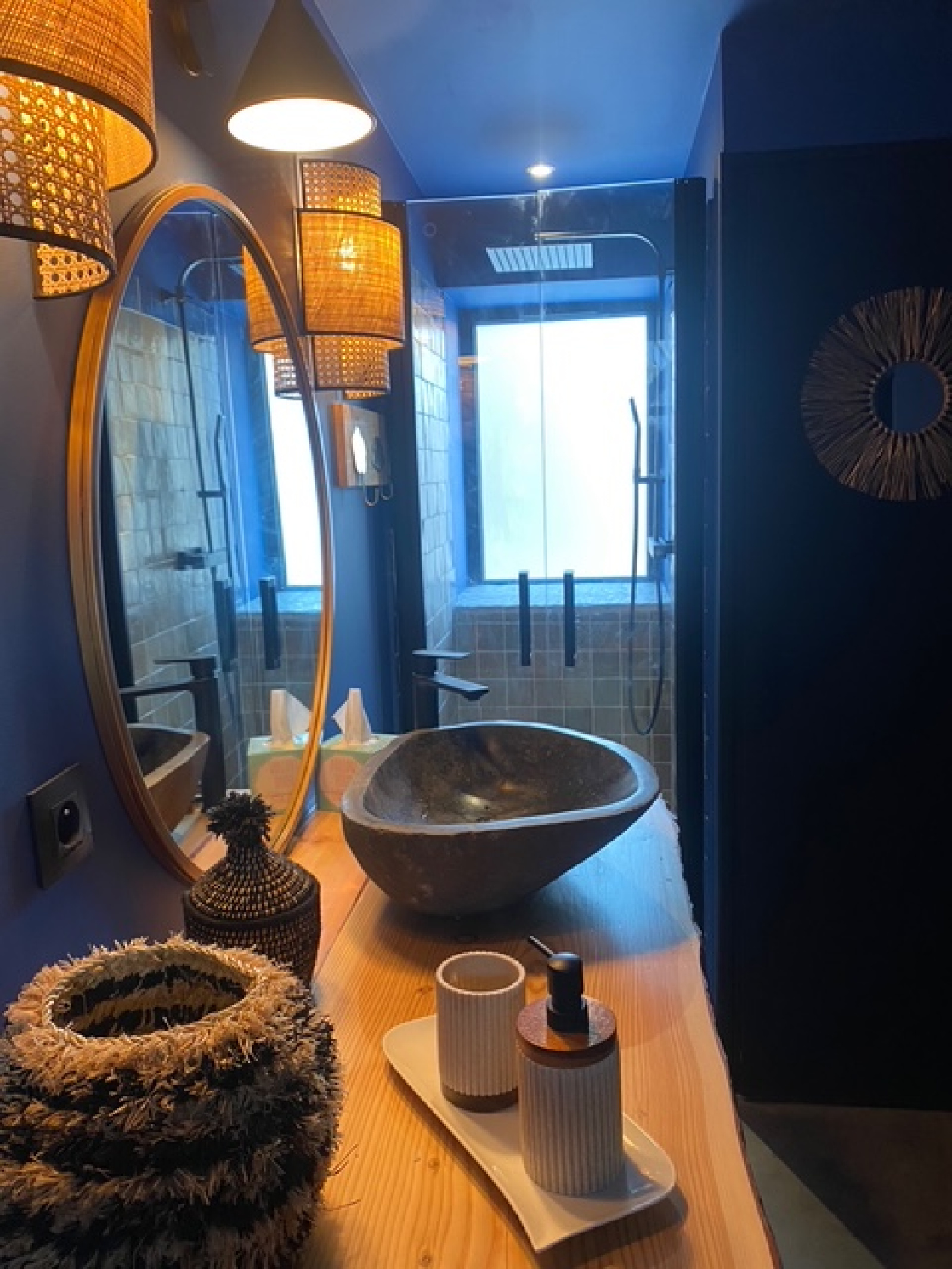 Un appartement décoré avec goût dans le même esprit bohème chic vous attend. Offrant un espace autonome et polyvalent, il est idéal pour la location, pour recevoir des invités ou tout simplement pour profiter d’un espace de vie supplémentaire.